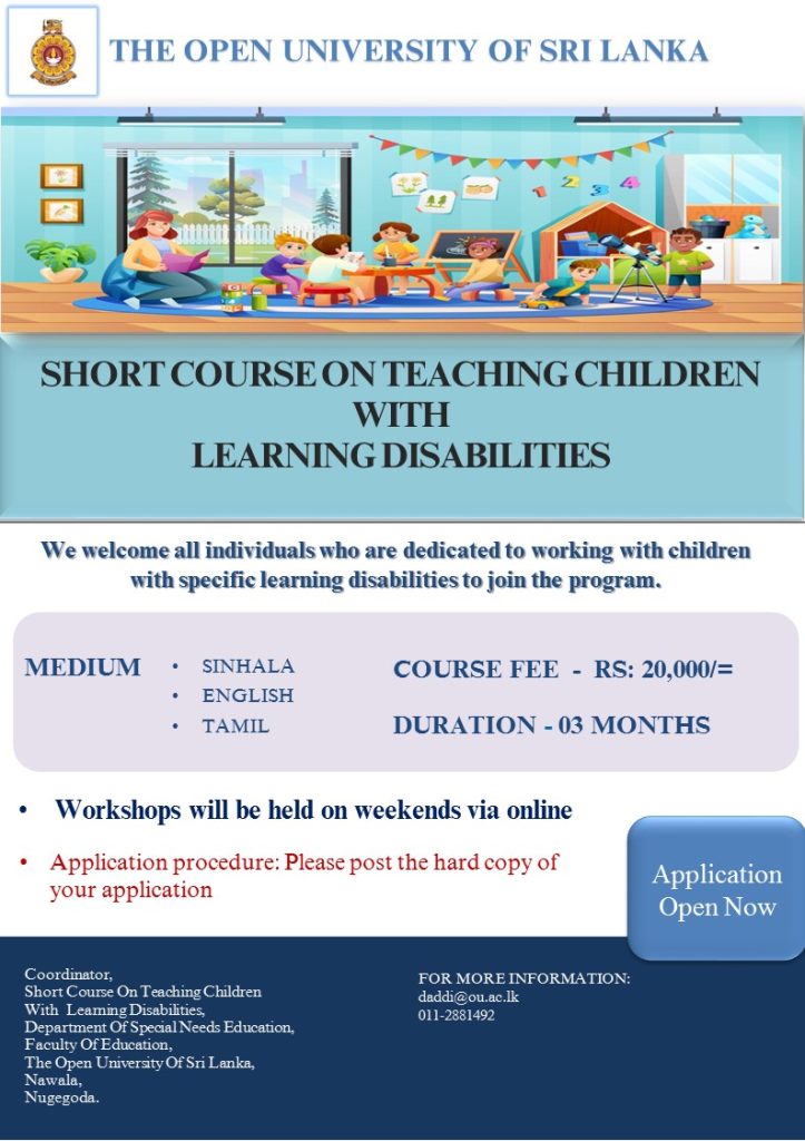 This short programme is conducted by the Department of Special Needs, Faculty of Education. For more details or contact the coordinator for further details