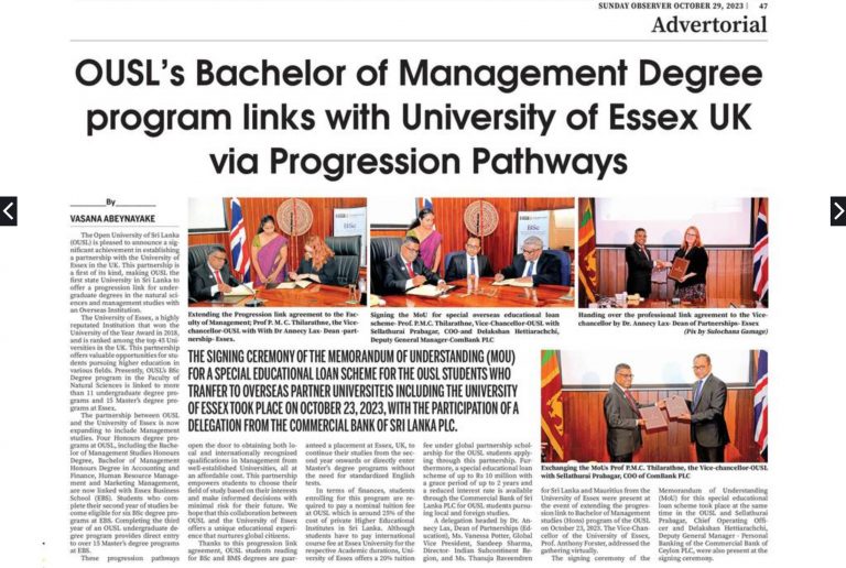 The Open University of Sri Lanka in celebration of 30 years of the BSc Honours in Nursing degree program.
