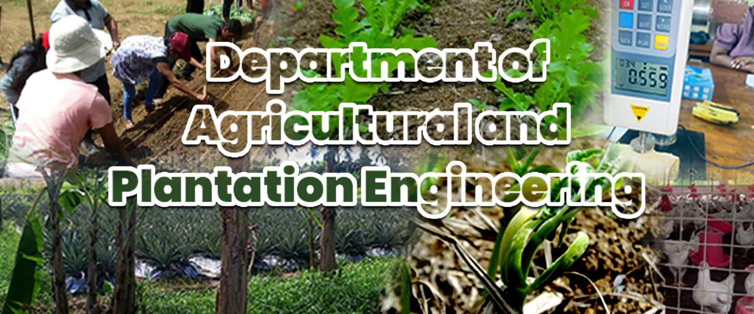 The Department of Agricultural and Plantation Engineering offers courses to individuals who intend to choose Agriculture as their career in the future and enhance working capacity of those who are already working in the field, targeting high levels of productivity and sustainability