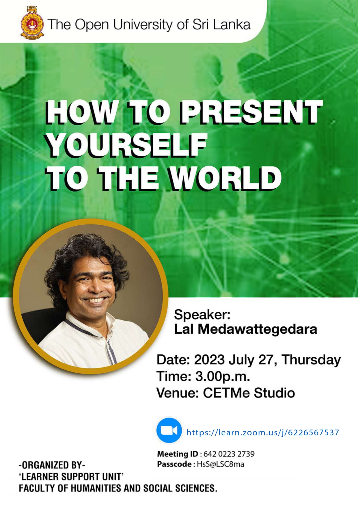 Project Assistant Learner Support Unit FHSS Office: Email:lschss@ou.ac.lk / ljjay@ou.ac.lk |